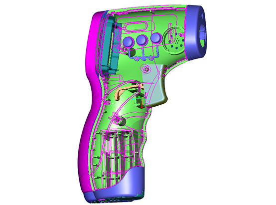 第二、體溫槍外殼塑膠注塑模具設計一定要考慮到溫槍組裝的合理性,溫槍塑膠模具設計結構越合理,組裝成本和人力成本才能越低。