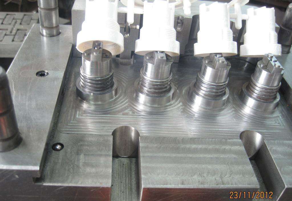 手動的螺紋通常用在產(chǎn)品量比較少的模具上。這種模具每次下的訂單比較少。要求也不高,所以做模具的時候,把螺紋做在鑲件上,再做一個靠模,注塑的時候,先把鑲件放到模具里,等注塑完成后,把鑲件拿出來,放到靠模上,把產(chǎn)品旋轉出來。這種方式是應對小批量的產(chǎn)品。